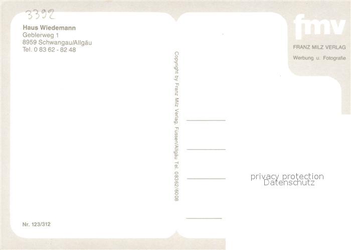 73202212 Schwangau Gaestehaus Pension Haus Wiedemann Alpenpanorama postalisch nicht gelaufen Erhaltung siehe scans [FriedD77] KatCode: 11110009777169