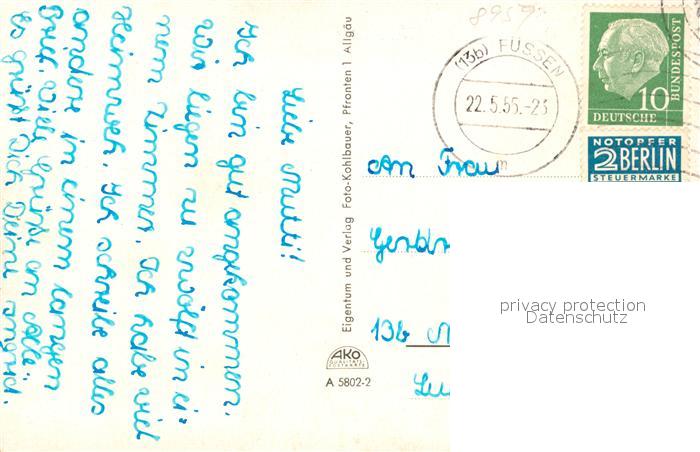 43352124 alte Postkarte Schwangau Kindererholungsheim Berghaus postalisch gelaufen Erhaltung siehe scans [WerneD78] KatCode: 11110009777169