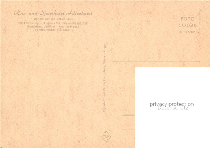 72961398 Schwangau Kur- und Sporthotel Adlerhorst postalisch nicht gelaufen Erhaltung siehe scans [PaolaD17] KatCode: 11110009777169