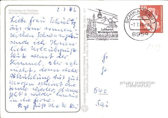 72414381 alte Postkarte Schwangau mit Aggenstein Breitenberg Falkenstein Edelsberg Fliegeraufnahme postalisch gelaufen Erhaltung siehe scans KatCode: 11110009777169