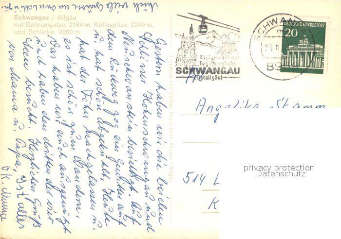 73647753 alte Postkarte Schwangau Ortspartie mit Gehrenspitze Koellespitze und Schlicke postalisch gelaufen Erhaltung siehe scans [WerneD78] KatCode: 11110009777169