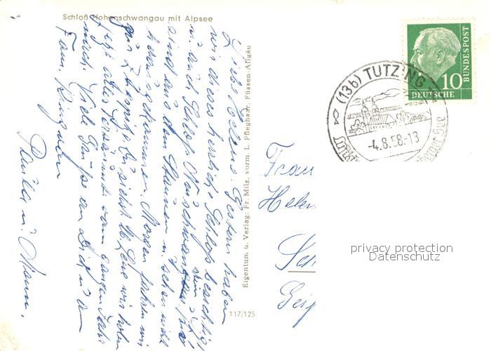 73550000 alte Postkarte Schwangau Schloss Hohenschwangau mit Alpsee postalisch gelaufen Erhaltung siehe scans [WerneD78] KatCode: 11110009777169