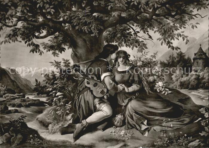 72519116 Schwangau Schloss Neuschwanstein Wandgemaelde Walter von der Vogelweide postalisch nicht gelaufen Erhaltung siehe scans KatCode: 11110009777169