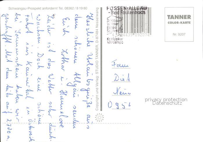 72376055 alte Postkarte Schwangau Tegelberg Bahn Forggensee postalisch gelaufen Erhaltung siehe scans KatCode: 11110009777169