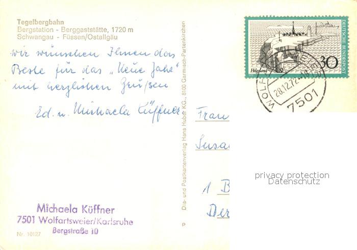 73124684 alte Postkarte Schwangau Tegelbergbahn Bergstation Berggaststaette Wintersportplatz Alpenpanorama postalisch gelaufen Erhaltung siehe scans [FriedD77] KatCode: 11110009777169
