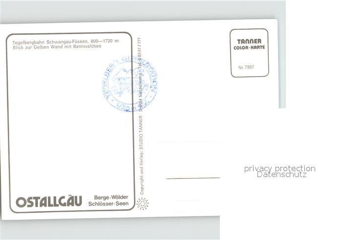 71903648 Schwangau Tegelbergbahn Blick zur Gelben Wand Bannwaldsee postalisch nicht gelaufen Erhaltung siehe scans KatCode: 11110009777169