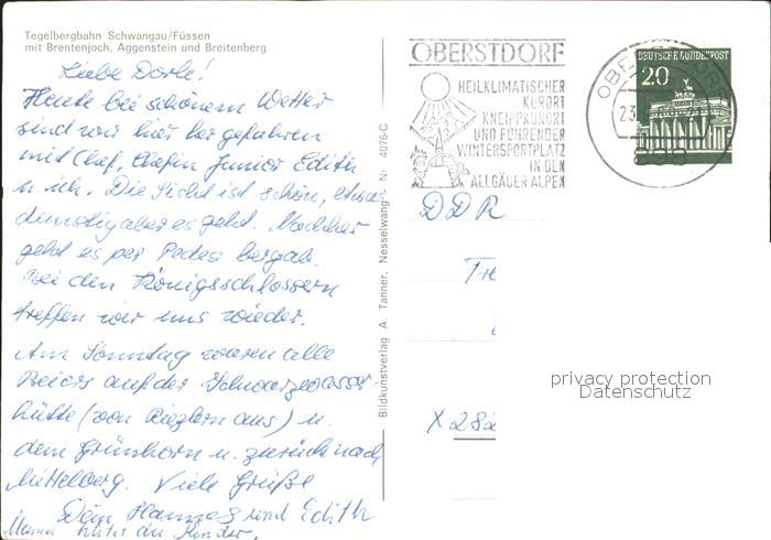 71931319 alte Postkarte Schwangau Tegelbergbahn Fuessen Brentenjoch Aggenstein Breitenberg postalisch gelaufen Erhaltung siehe scans KatCode: 11110009777169