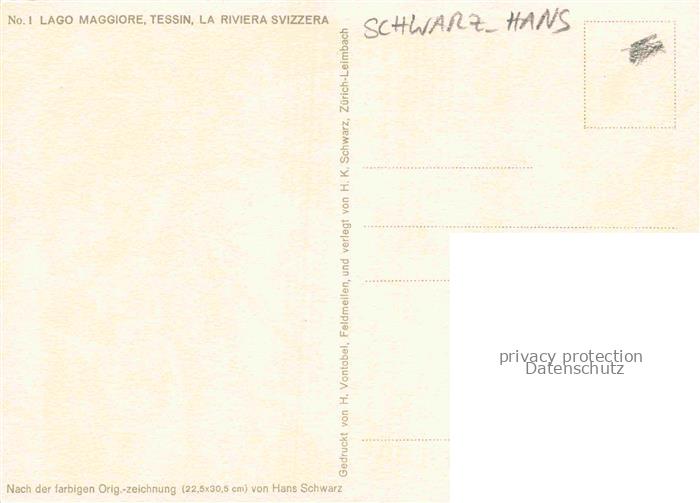 74037280 Schwarz Hans Kuenstlerkarte Tessin la Riviera Svizzera Lago Maggiore postalisch nicht gelaufen Erhaltung siehe scans [SanaeD93] KatCode: 22240000003200