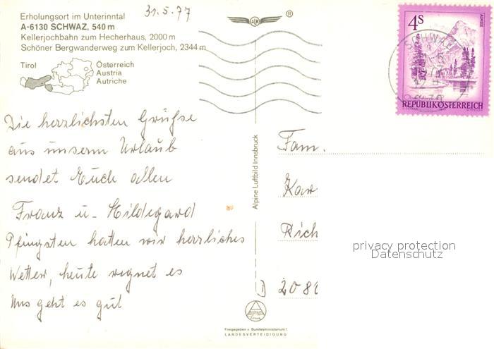 13218714 alte Postkarte Schwarz Tirol im Unterinntal Fliegeraufnahme Kellerjoch postalisch gelaufen Erhaltung siehe scans [LiesaD40] KatCode: 11390332070101