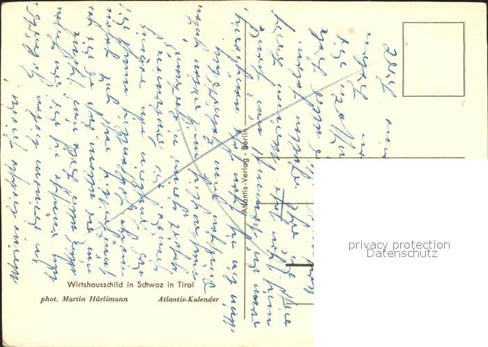 72228203 Schwarz Tirol Wirtshausschild postalisch nicht gelaufen Erhaltung siehe scans KatCode: 11390332070101