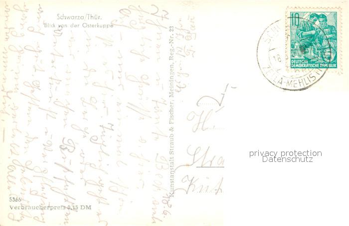 73572536 alte Postkarte Schwarza Thueringer Wald Panorama Blick von der Osterkuppe postalisch gelaufen Erhaltung siehe scans [FriedD77] KatCode: 11110016066065