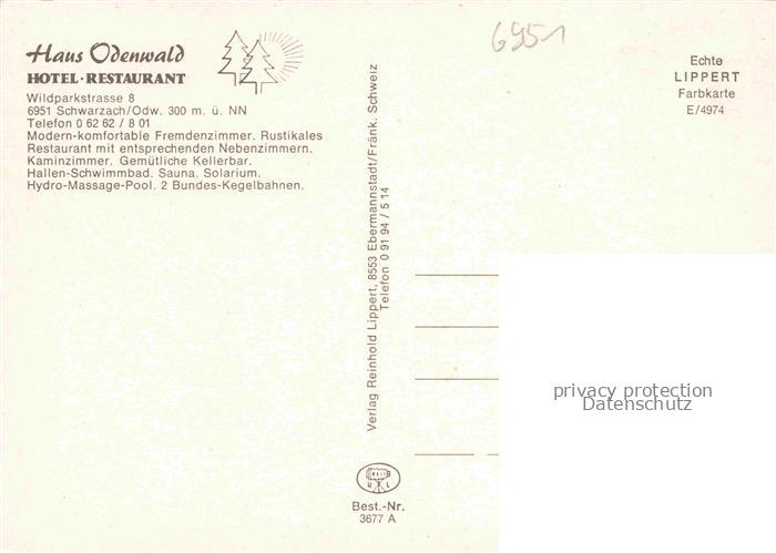74048252 Schwarzach Odenwald Hotel Restaurant Haus Odenwald Minigolf Kegelbahn Hallenbad postalisch nicht gelaufen Erhaltung siehe scans [FriedD77] KatCode: 11110008225116