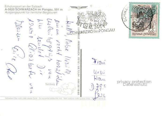 73018725 alte Postkarte Schwarzach Pongau Cafe Kirche postalisch gelaufen Erhaltung siehe scans [NatalD47] KatCode: 11390322050421