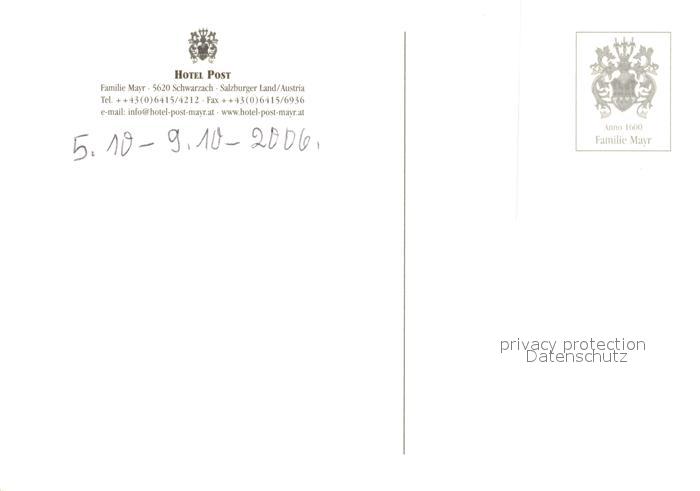 13221725 Schwarzach Pongau Hotel Post postalisch nicht gelaufen Erhaltung siehe scans [LiesaD40] KatCode: 11390322050421