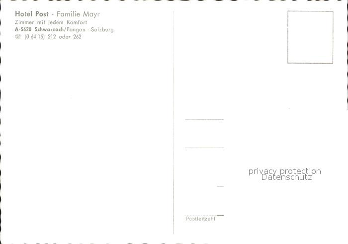 72277078 Schwarzach Pongau Hotel Post Mayr postalisch nicht gelaufen Erhaltung siehe scans KatCode: 11390322050421