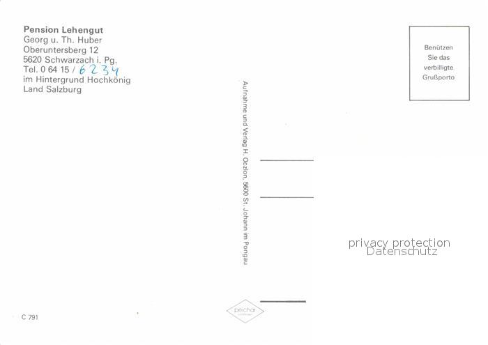 72666077 Schwarzach Pongau Pension Lehengut postalisch nicht gelaufen Erhaltung siehe scans [WerneD78] KatCode: 11390322050421