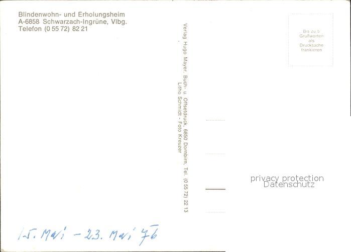 72000883 Schwarzach Vorarlberg Ingruene Blindenwohnheim postalisch nicht gelaufen Erhaltung siehe scans KatCode: 11390342080235