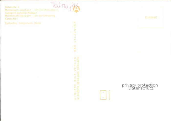 72350316 Schwarzatal Katzhuette II Mellenbach-Glasbach Talsperre Scheibe-Alsbach postalisch nicht gelaufen Erhaltung siehe scans KatCode: 11110016073076