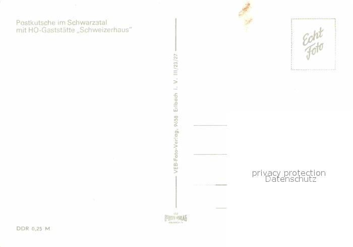 72728028 Schwarzatal Postkutsche mit HO Gaststaette Schweizerhaus postalisch nicht gelaufen Erhaltung siehe scans [FriedD77] KatCode: 11110016073076