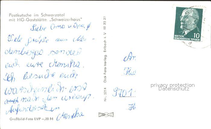 72385949 alte Postkarte Schwarzatal Postkutsche Restaurant Schweizerhaus postalisch gelaufen Erhaltung siehe scans KatCode: 11110016073076