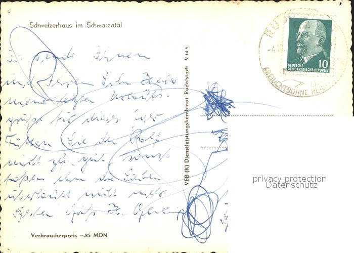 72344296 alte Postkarte Schwarzatal Schweizerhaus Gaststaette postalisch gelaufen Erhaltung siehe scans KatCode: 11110016073076