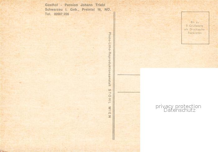 73663425 Schwarzau Gebirge Gasthof Triebl postalisch nicht gelaufen Erhaltung siehe scans [LiesaD40] KatCode: 11390122031836