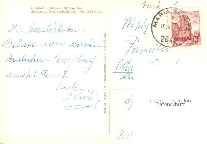 13234738 alte Postkarte Schwarzau Gebirge Gasthof zur Singerin postalisch gelaufen Erhaltung siehe scans [FriedD77] KatCode: 11390122031836
