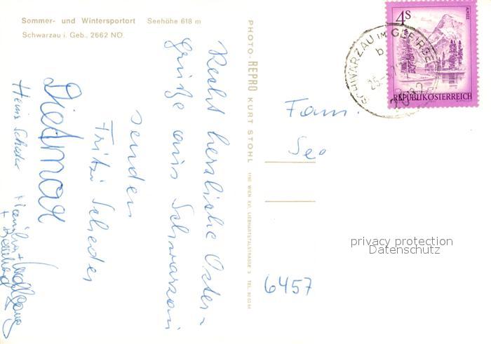 73259375 alte Postkarte Schwarzau Gebirge Sesselbahn Kirche postalisch gelaufen Erhaltung siehe scans [NatalD47] KatCode: 11390122031836