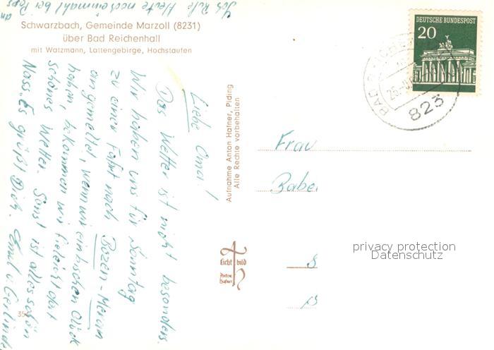 73670865 alte Postkarte Schwarzbach Bad Reichenhall Panorama mit Watzmann und Lattengebirge Euderheu Hochstaufen Ortspartie postalisch gelaufen Erhaltung siehe scans [WerneD78] KatCode: 11110009172114