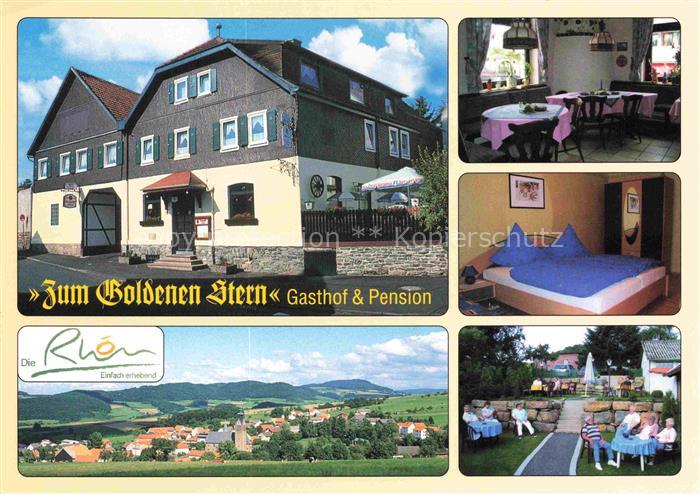 74096043 Schwarzbach Huenfeld Gasthof Pension Zum Goldenen Stern Gaststube Zimmer Terrasse Panorama postalisch nicht gelaufen Erhaltung siehe scans [WerneD78] KatCode: 11110006631013