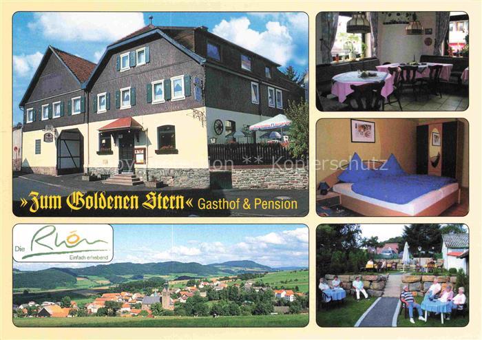 74096053 Schwarzbach Huenfeld Gasthof Pension Zum Goldenen Stern Gaststube Zimmer Terrasse Panorama postalisch nicht gelaufen Erhaltung siehe scans [WerneD78] KatCode: 11110006631013