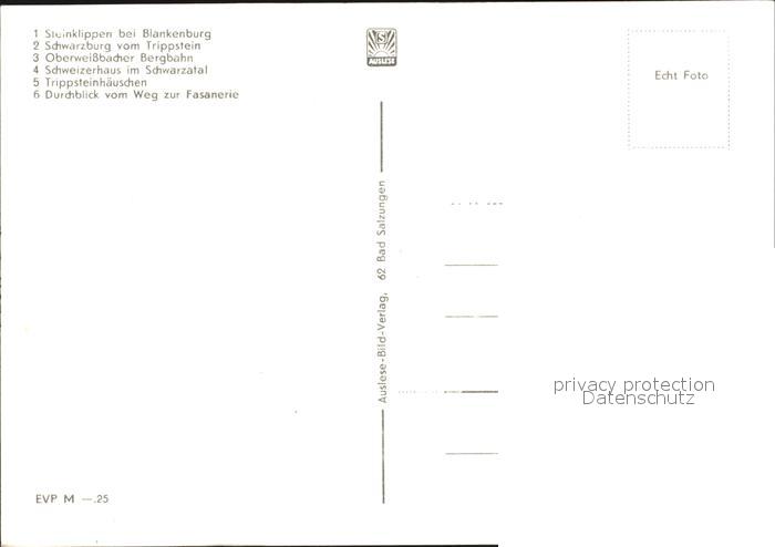 72427345 Schwarzburg Thueringer Wald Bergbahn Blankenburg Trippstein Schweizerhaus im Schwarzatal postalisch nicht gelaufen Erhaltung siehe scans KatCode: 11110016073082
