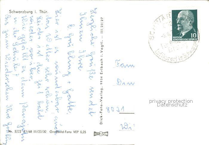 72474178 alte Postkarte Schwarzburg Thueringer Wald Blick ueber die Stadt postalisch gelaufen Erhaltung siehe scans KatCode: 11110016073082