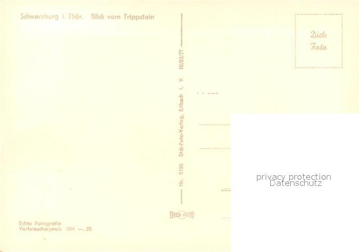 73137862 Schwarzburg Thueringer Wald Blick vom Trippstein postalisch nicht gelaufen Erhaltung siehe scans [NatalD47] KatCode: 11110016073082