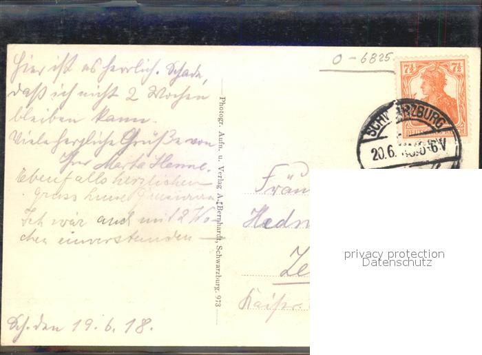 42441450 alte Postkarte Schwarzburg Thueringer Wald Blick von der Friedrichshoehe postalisch gelaufen Erhaltung siehe scans KatCode: 11110016073082