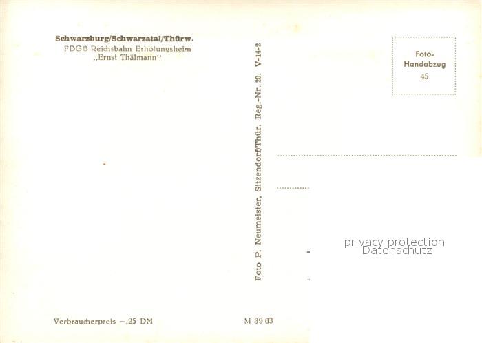 73547427 Schwarzburg Thueringer Wald FDGB Reichsbahn Erholungsheim Ernst Thaelmann postalisch nicht gelaufen Erhaltung siehe scans [WerneD78] KatCode: 11110016073082
