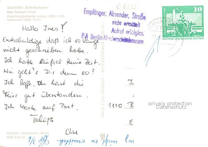 72958223 alte Postkarte Schwarzburg Thueringer Wald Gaststaette Schlossschenke Max Reimann Platz Kaisersaalgebaeude postalisch gelaufen Erhaltung siehe scans [FriedD77] KatCode: 11110016073082