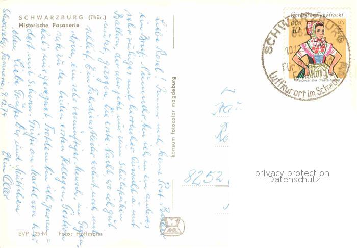 72819323 alte Postkarte Schwarzburg Thueringer Wald Historische Fasanerie postalisch gelaufen Erhaltung siehe scans [KathaD81] KatCode: 11110016073082