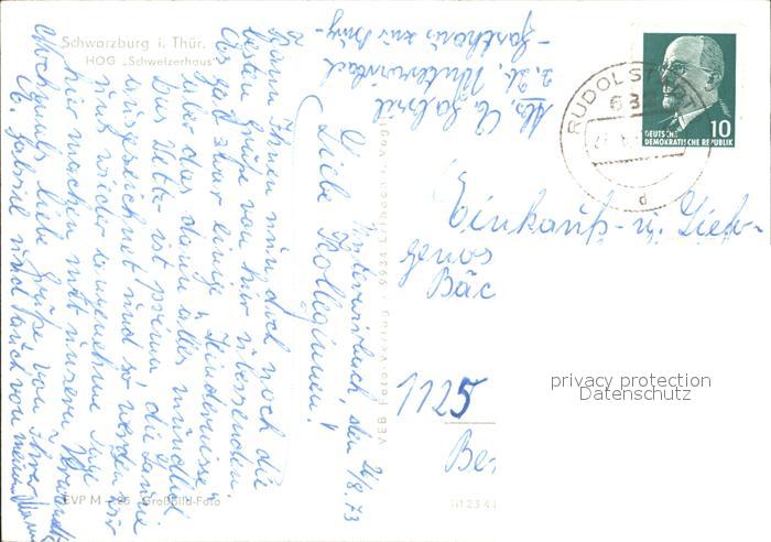 72182366 alte Postkarte Schwarzburg Thueringer Wald HOG Schweizerhaus postalisch gelaufen Erhaltung siehe scans KatCode: 11110016073082