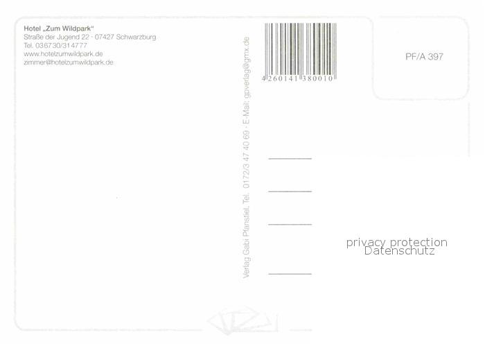 72682492 Schwarzburg Thueringer Wald Hotel Zum Wildpark postalisch nicht gelaufen Erhaltung siehe scans [LiesaD40] KatCode: 11110016073082