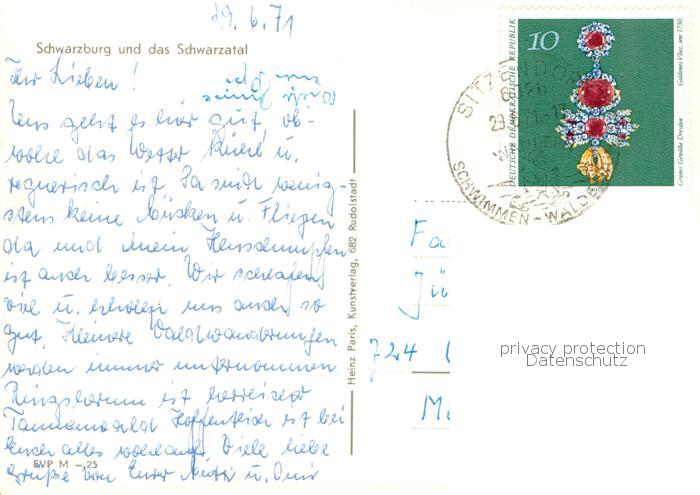 73750960 alte Postkarte Schwarzburg Thueringer Wald im Schwarzatal mit Gaststaette und Burg postalisch gelaufen Erhaltung siehe scans [WerneD78] KatCode: 11110016073082