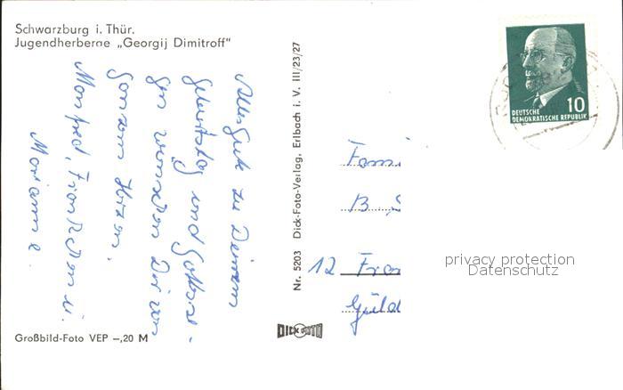71982471 alte Postkarte Schwarzburg Thueringer Wald Jugendherberge Georgij Dimitroff postalisch gelaufen Erhaltung siehe scans KatCode: 11110016073082