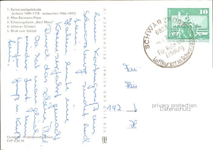 72263576 alte Postkarte Schwarzburg Thueringer Wald Kaisersaalgebaeude Max-Reimann-Platz Erholungsheim Karl Marx Schloss postalisch gelaufen Erhaltung siehe scans KatCode: 11110016073082
