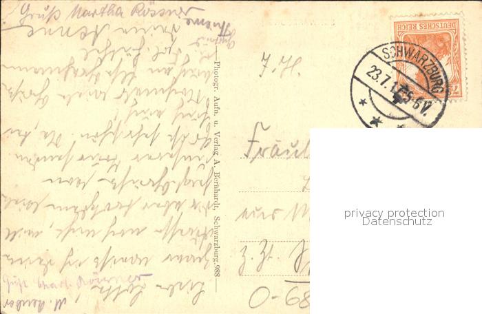 42588739 alte Postkarte Schwarzburg Thueringer Wald Kirchenpartei postalisch gelaufen Erhaltung siehe scans [LiesaD40] KatCode: 11110016073082