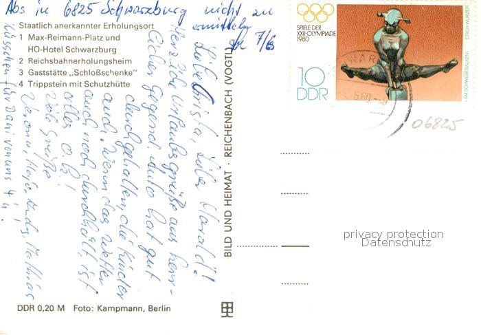 72937453 alte Postkarte Schwarzburg Thueringer Wald Max Reimann Platz HO Hotel Erholungsheim Gaststaette Trippstein Schutzhuette postalisch gelaufen Erhaltung siehe scans [FriedD77] KatCode: 11110016073082