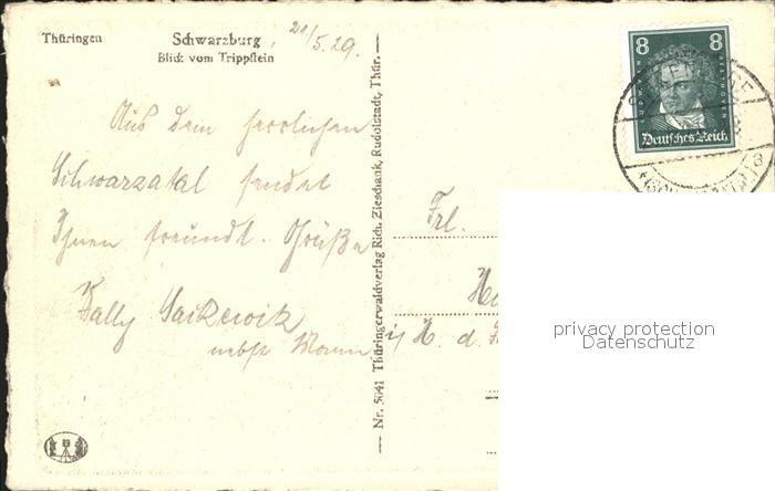72368936 alte Postkarte Schwarzburg Thueringer Wald Panorama Blick vom Trippstein postalisch gelaufen Erhaltung siehe scans KatCode: 11110016073082