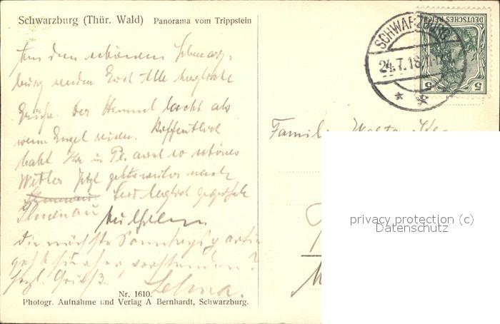 71530620 alte Postkarte Schwarzburg Thueringer Wald Panorama Trippstein postalisch gelaufen Erhaltung siehe scans KatCode: 11110016073082