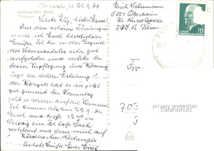 72350892 alte Postkarte Schwarzburg Thueringer Wald Panorama Trippstein postalisch gelaufen Erhaltung siehe scans KatCode: 11110016073082