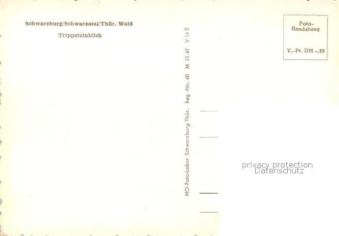 73135685 Schwarzburg Thueringer Wald Panorama Trippsteinblick Handabzug postalisch nicht gelaufen Erhaltung siehe scans [FriedD77] KatCode: 11110016073082