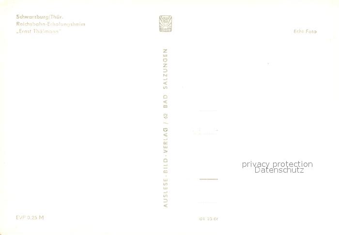 73071610 Schwarzburg Thueringer Wald Reichsbahn Erholungsheim Ernst Thaelmann postalisch nicht gelaufen Erhaltung siehe scans [WerneD78] KatCode: 11110016073082